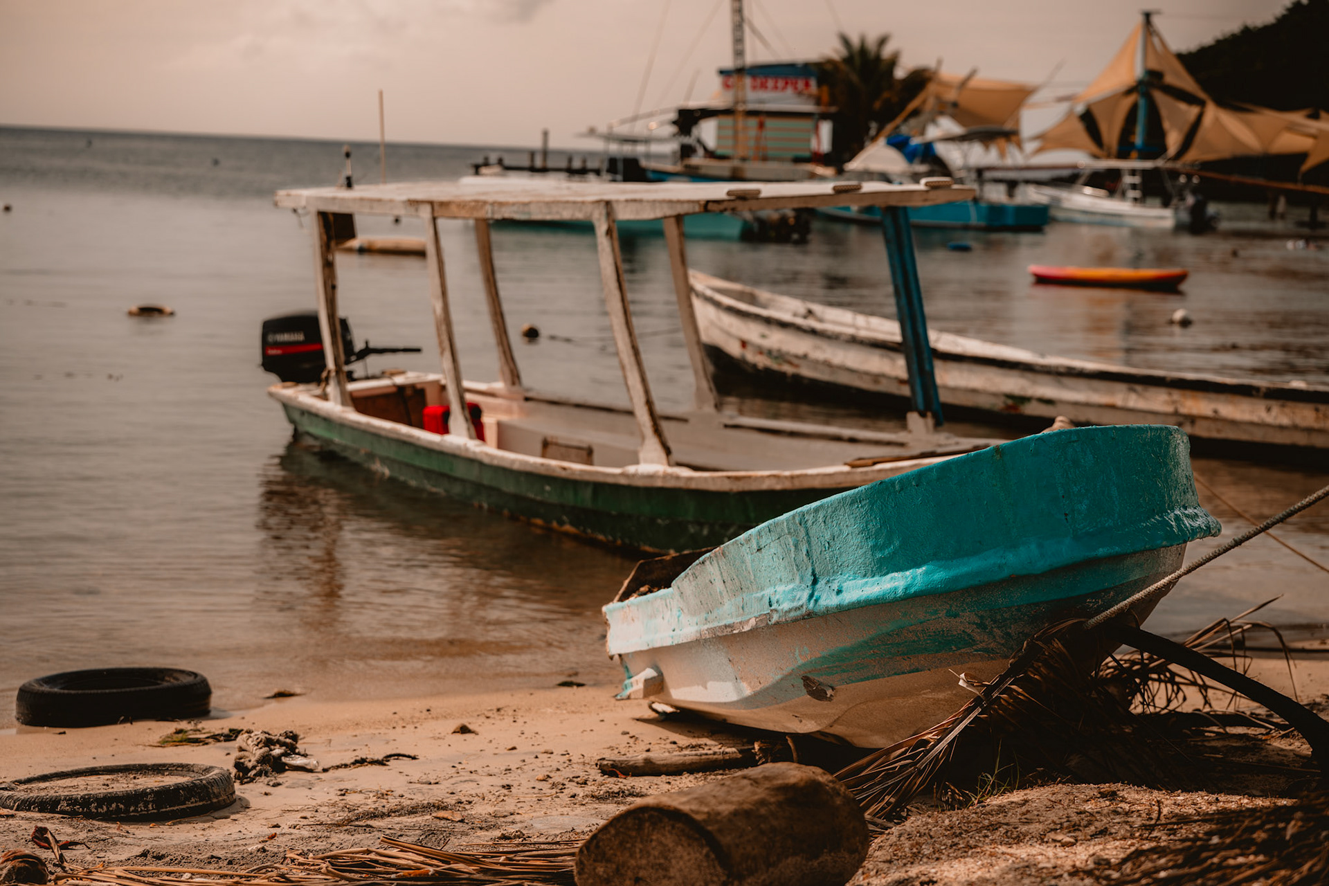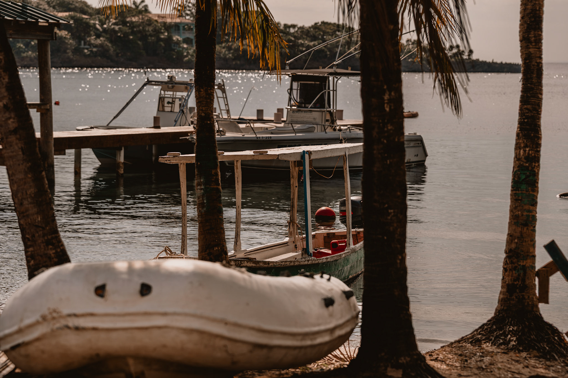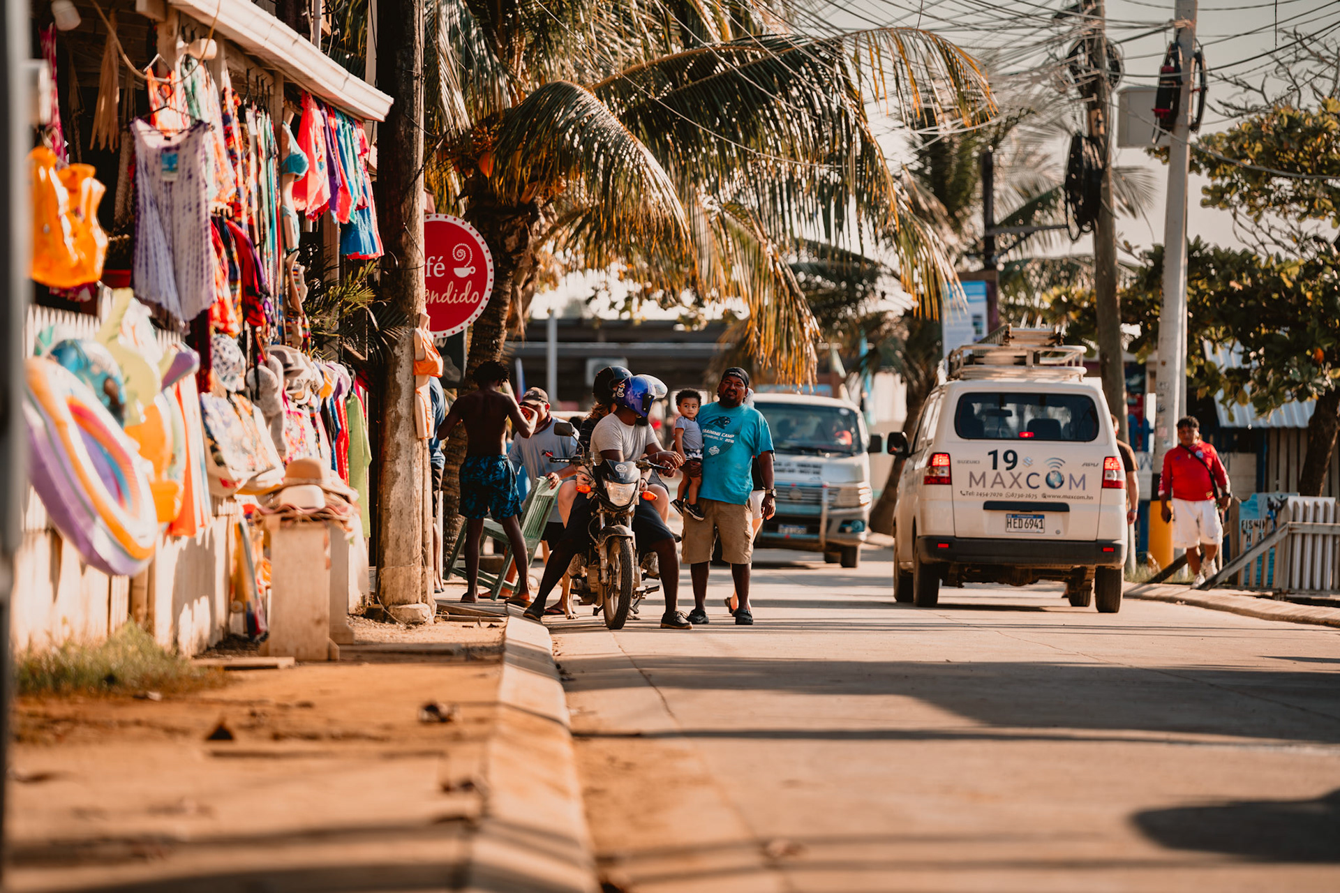 Roatán feels like time moves differently. The air is heavy with salt and light, the water shifts from turquoise to deep blue in a breath. Mornings start quiet — fishermen and divers heading out, palm trees leaning into the wind — and by sunset, the whole island glows. These images capture that rhythm: unhurried, vivid, and full of life that never really fades.