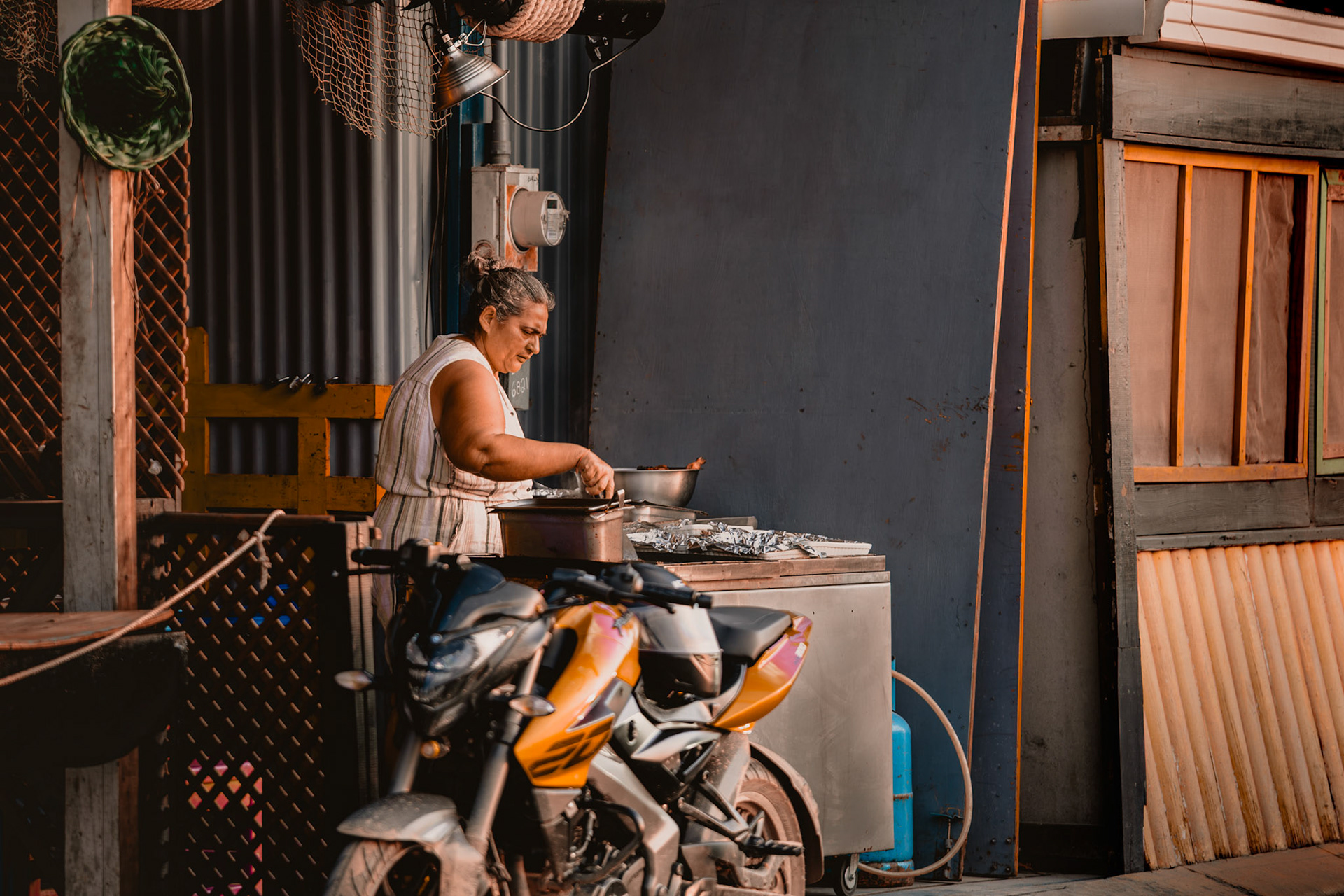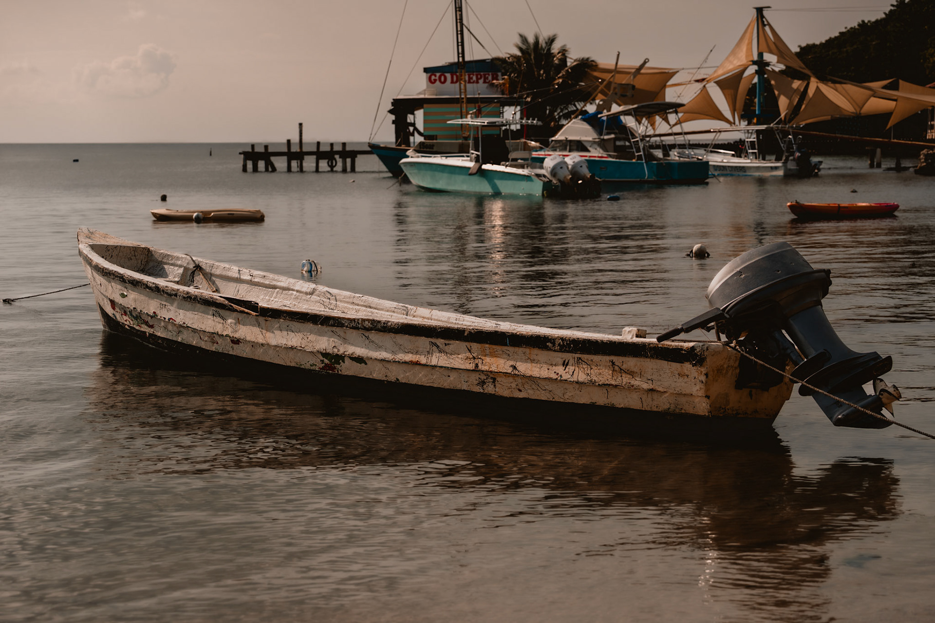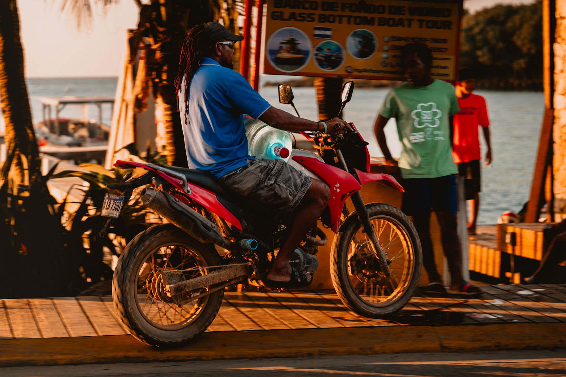 Roatán feels like time moves differently. The air is heavy with salt and light, the water shifts from turquoise to deep blue in a breath. Mornings start quiet — fishermen and divers heading out, palm trees leaning into the wind — and by sunset, the whole island glows. These images capture that rhythm: unhurried, vivid, and full of life that never really fades.